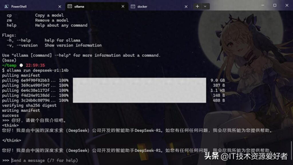 ollama run deepseek-r1:14b开始下载,14b 的模型大小是 9GB