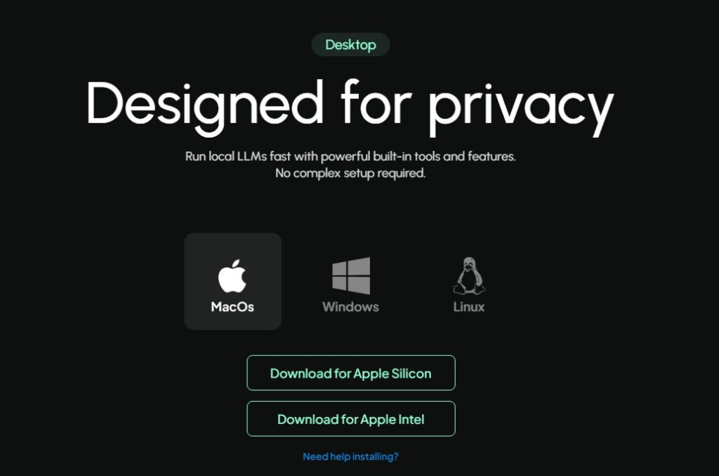 AnythingLLM 提供了 Mac、Windows 和 Linux 的安装包,用户可以直接从官网下载并安装。