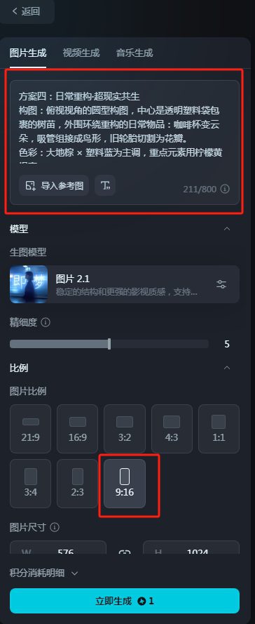 将提示词粘贴至即梦AI“ai作图”页面,调整比例为9:16。