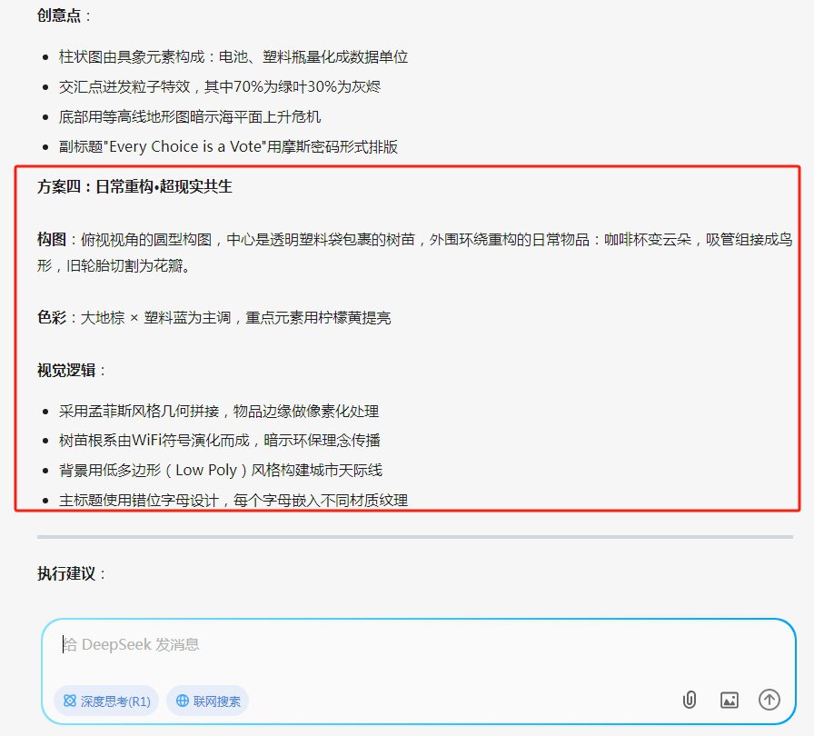 Deepseek生成了相关的四条方案,我们选中其中的方案四来操作。
