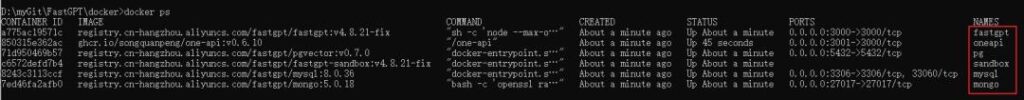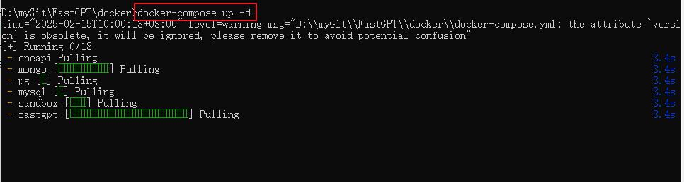 接下来我们使用FastGPT的docker-compose.yml文件把FastGPT一键启动。