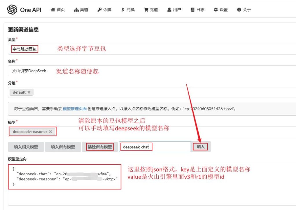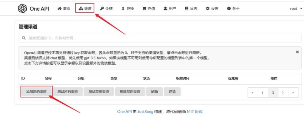 我们获取到模型id和apikey之后,需要去one-api配置一下