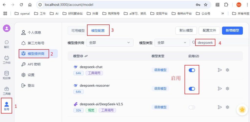 接下来我们去FastGPT添加deepseek-chat(V3)和deepseek-reasoner(R1)模型。
