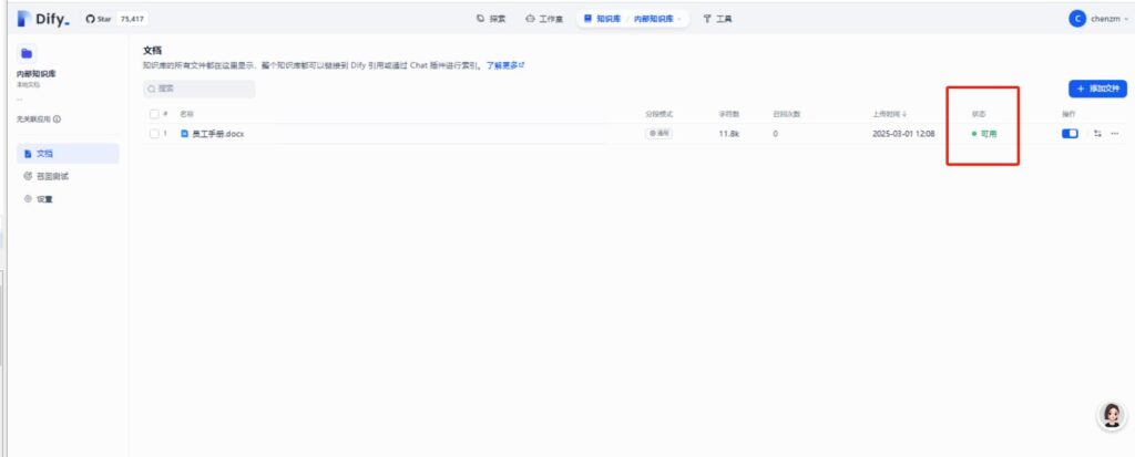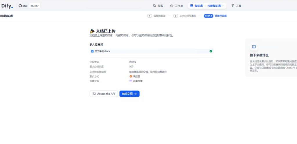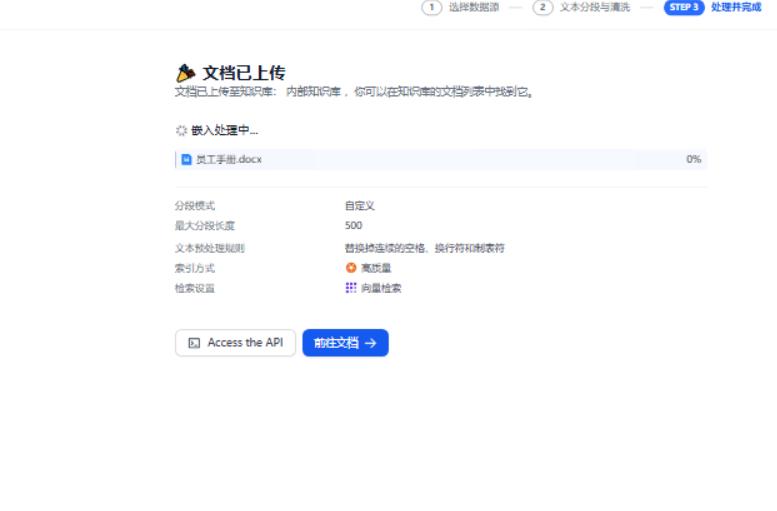 上传,嵌入处理,这时模型会对文档进行向量化处理