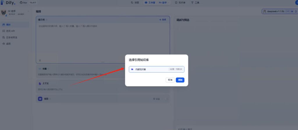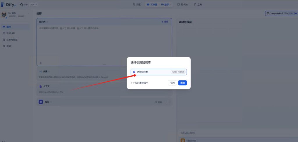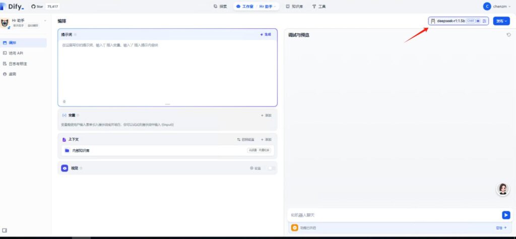 调试测试——选择聊天模型,如deepseek-r1:1.5b ,该模型如何安装和使用可以查看前面的文章有详细步骤。