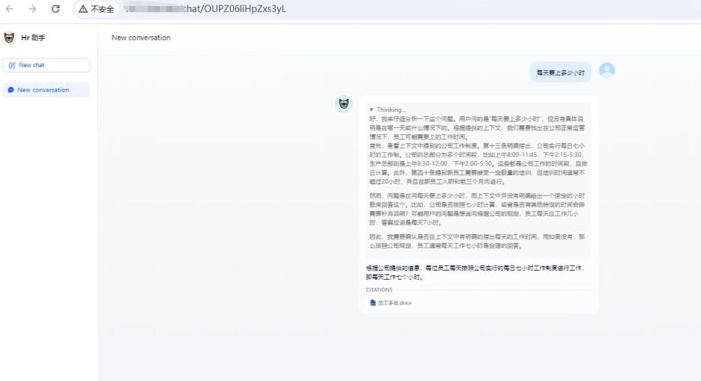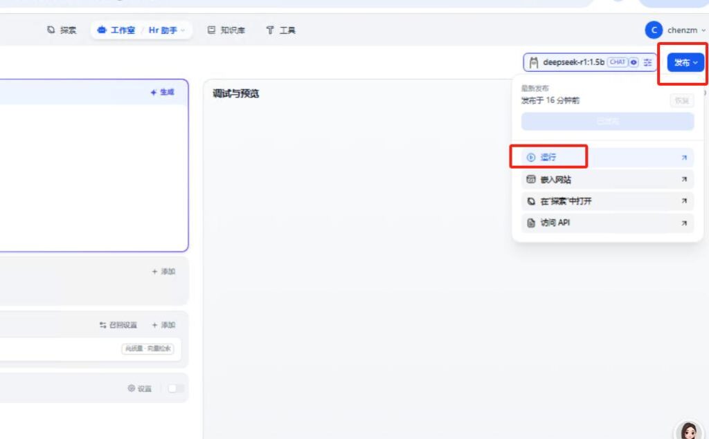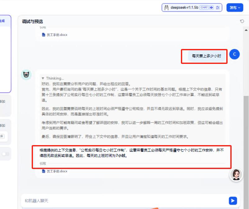 测试结果,对知识库的回答基本符合预期。调试完成就可以发布——运行使用了。