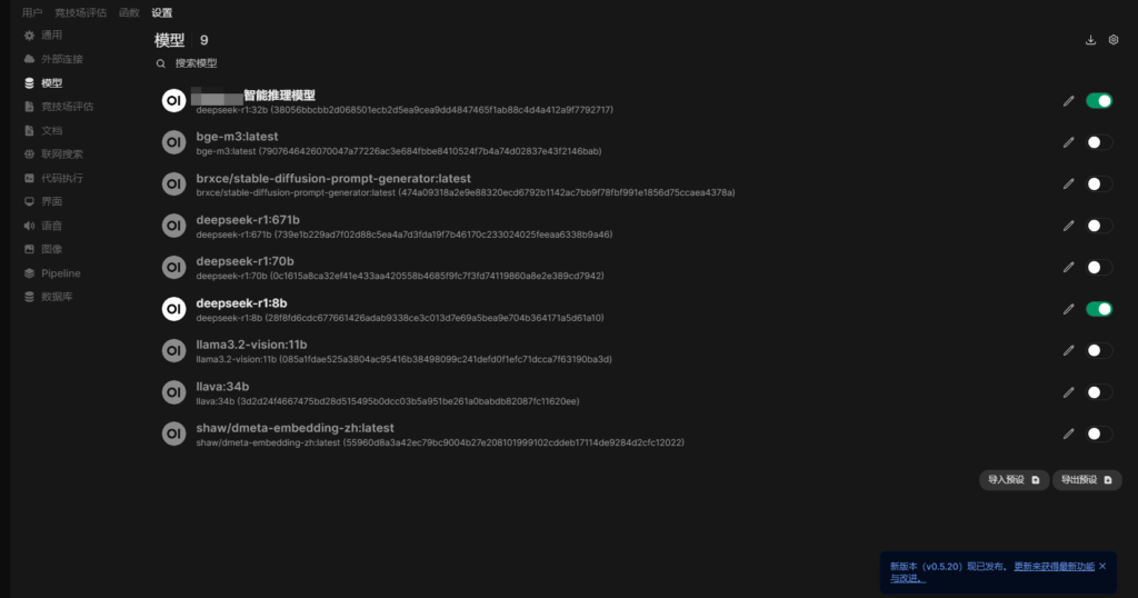 2、点击设置->选择模型:这里列出了ollama运行的所以模型。