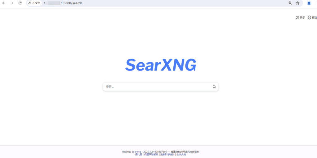 docker run -d -p 8888:8080 searxng/searxng通过http://localhost:8888即可访问: