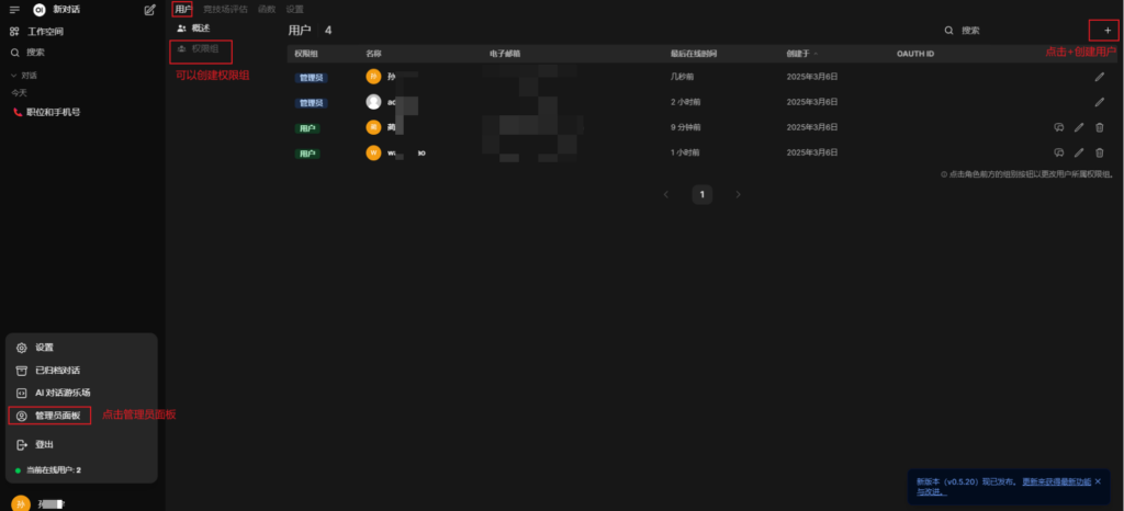 1.路径:左侧导航栏进入 Admin Panel > Users