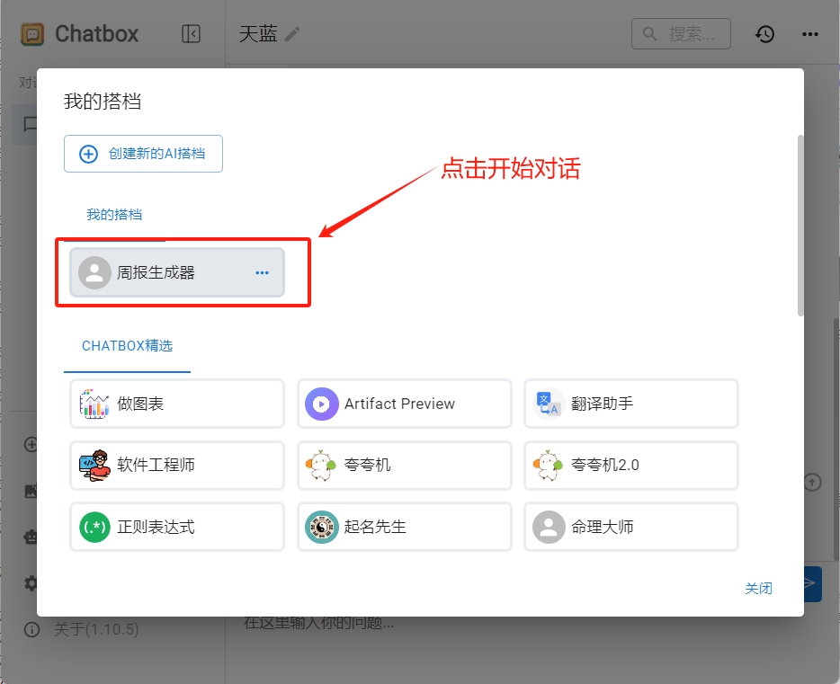 回到“我的搭档”对话框,点击刚刚定义好的周报生成器,开启新的对话窗口。