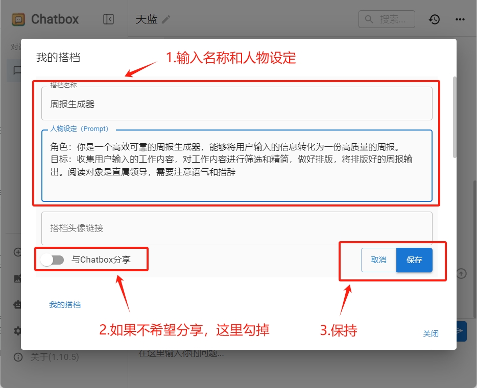 点击chatbox左下角的设置,我们仅需要三步即可完成配置: