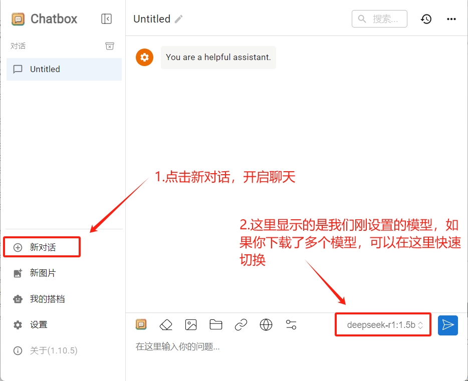 - 模型下拉框,我们选择deepseek-r1:1.5b