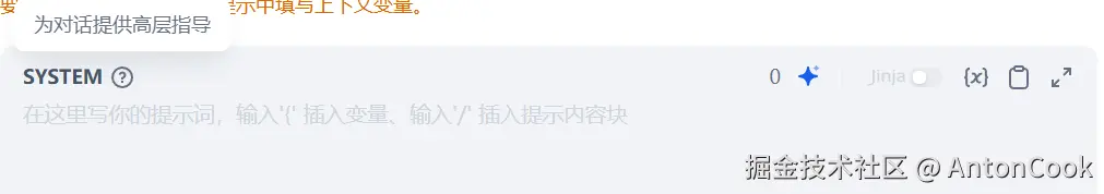 例如,我们先把必填的上下文写入,使用{}包裹即可插入变量,且有输入提示