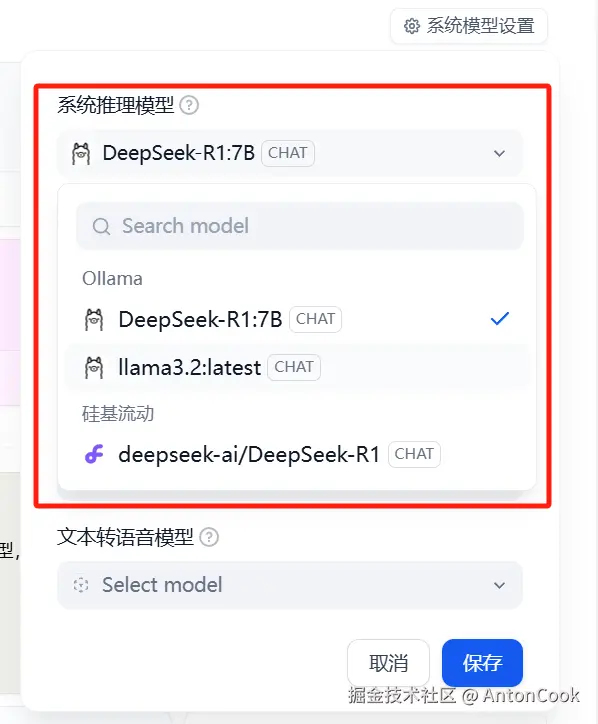 在弹出的窗口中,将系统推理模型更改为其他模型,我这里将改为 Llama 3.2