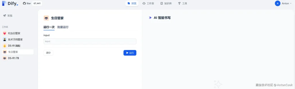 发布后去到应用首页,也就是探索页的工作区,你发布过的应用都能在这里这里使用了