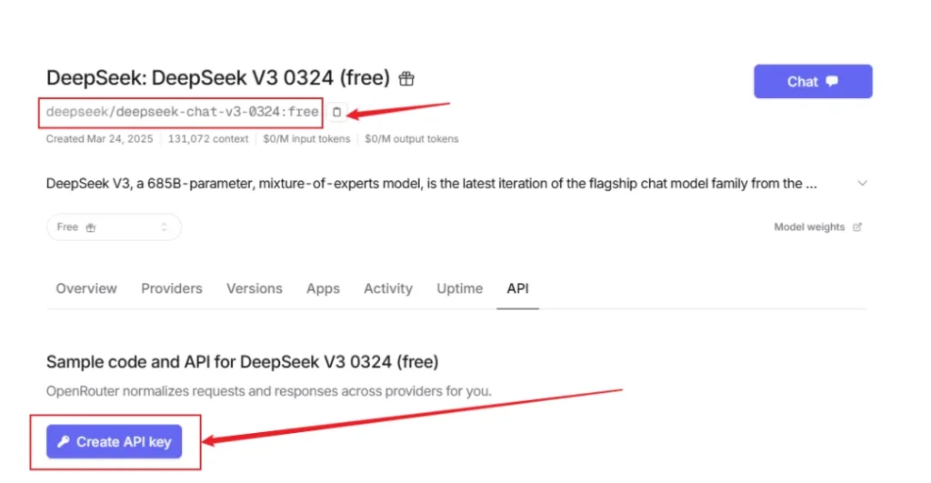 deepseek昨天才开源的新版deepseek v3,openrouter立马就上线了(关键api还是免费使用)。