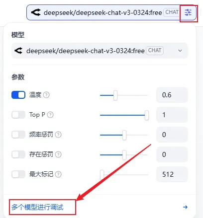这里我开了两个模型,一个是刚刚配置的openrouter的新版v3,一个是硅基流动的旧版v3