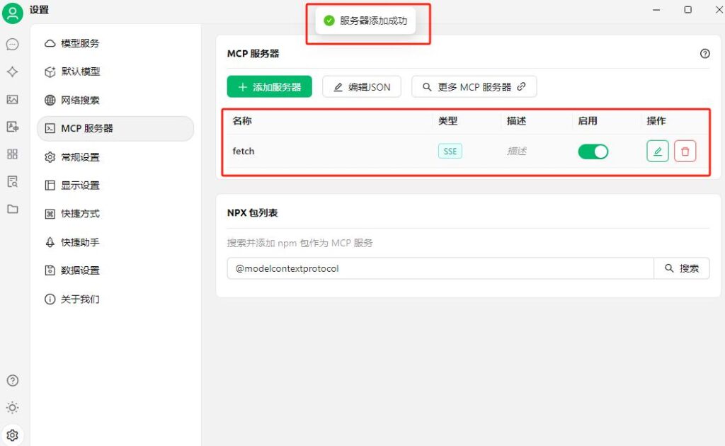 现在,关于在cherry studio中使用SSE类型和STDIO类型配置MCP服务就介绍完了,大家可以根据自己的实际需求,在配置MCP服务时选择合适的类型。
