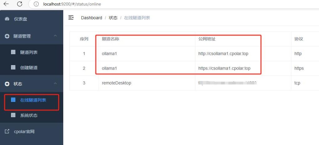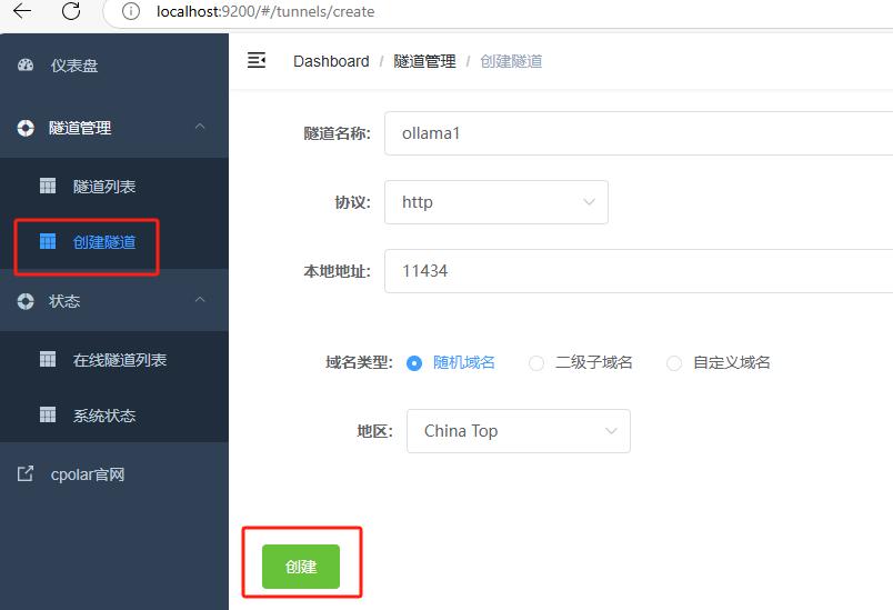 - 隧道名称:ollama1(可自定义命名,注意不要与已有的隧道名称重复)
