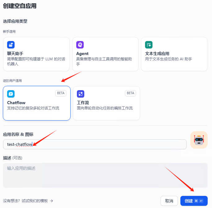 新建聊天工作流test-chatflow
