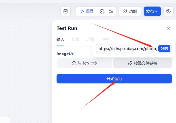 需求:通过dify工作流,上传图片,或者输入在线图片地址,通过AI分析图片内容,返回结果。