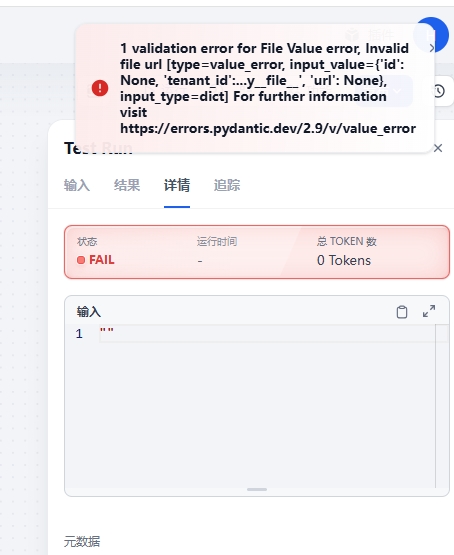 1 validation error for File Value error, Invalidfile url [type=value error, input value={‘id’:None, ‘tenant id’:..y file ‘, ‘url’: None),input type=dict] For further informationvisit