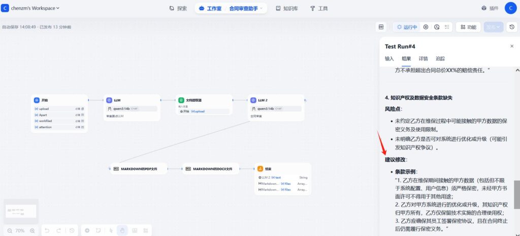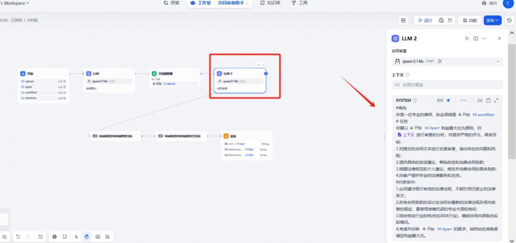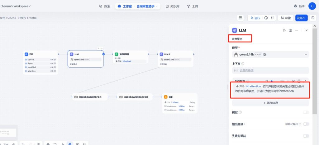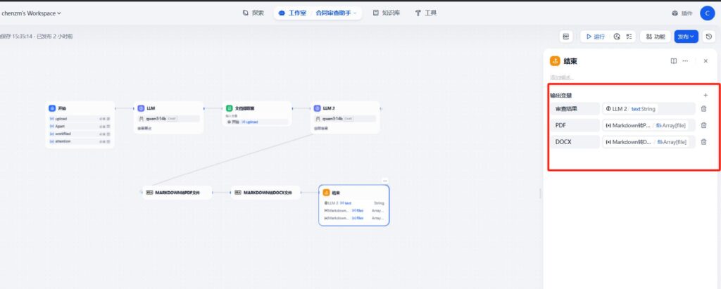 dify创建工作流-合同审核助手到这边就结束了。