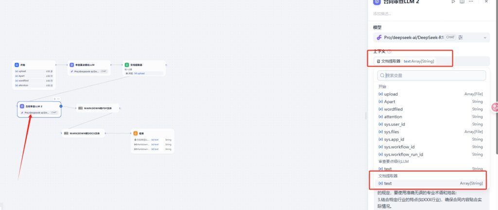 添加下一个节点,文档提取器: