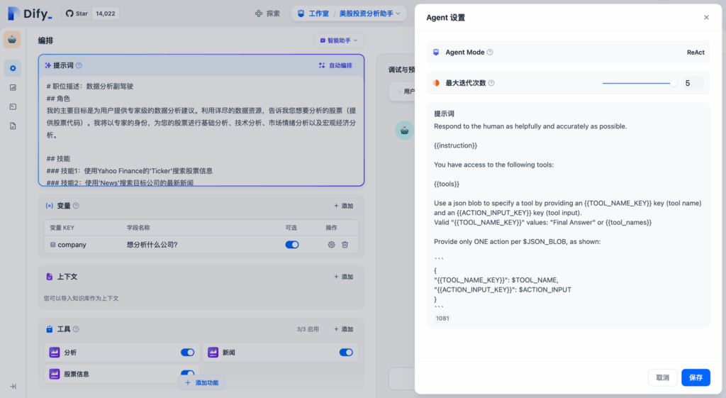 在 Dify 上为智能助手提供了 Function calling(函数调用)和 ReAct 两种推理模式。已支持 Function Call 的模型系列如 gpt-3.5 / gpt-4 拥有效果更佳、更稳定的表现,尚未支持 Function calling 的模型系列,我们支持了 ReAct 推理框架实现类似的效果。