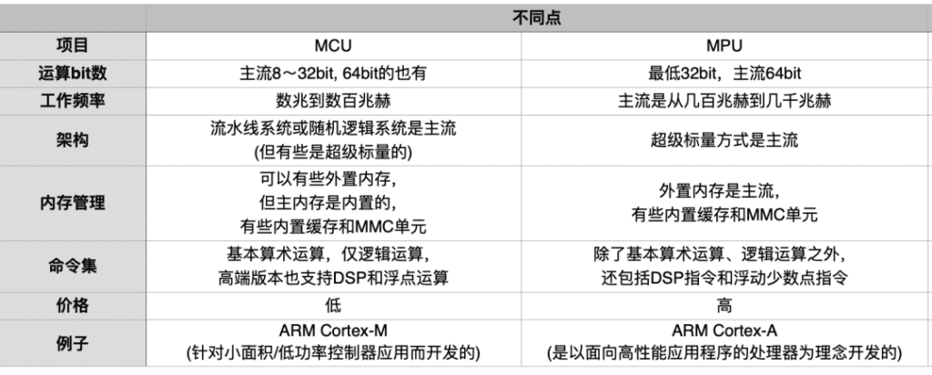 2.1 MCU和MPU的区别MCU和MPU都是CPU发展出来的分枝之一。