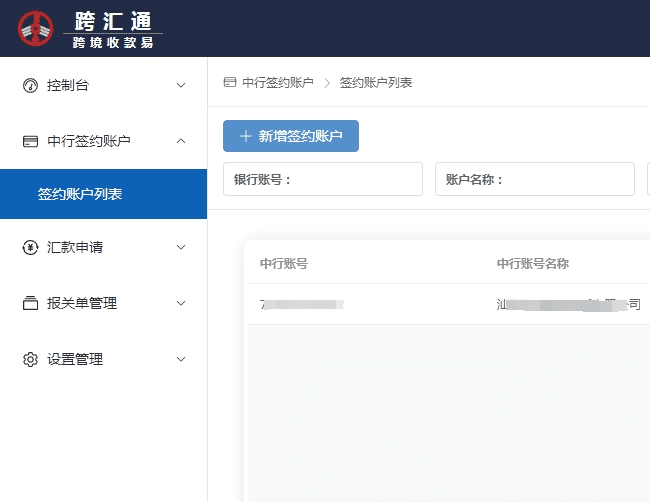 第三步:在签约账户列表下提交完善新增签约账号功能。