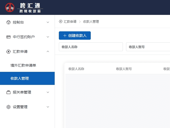 第四步:进行收款人管理并在线填写境外汇款人申请单,进行汇款。