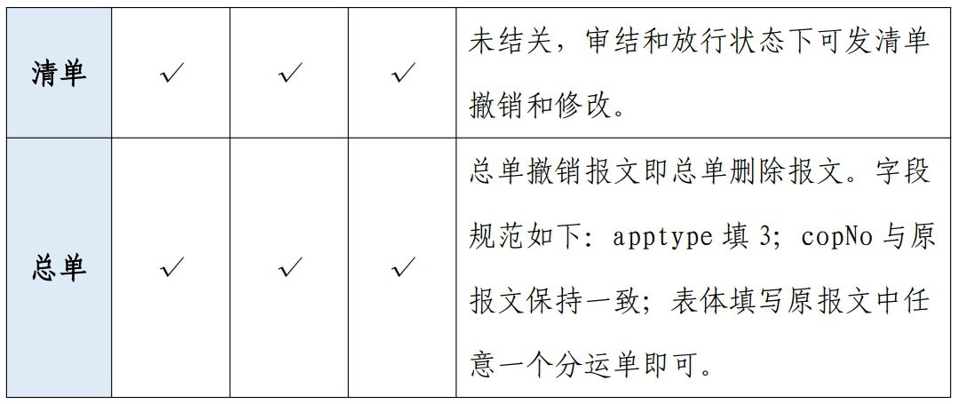 3. 总单撤销表体只放一个分运单即可,msgCount和msgSeqNo 内容都为 1。
