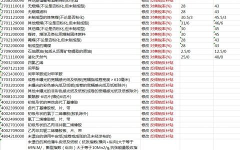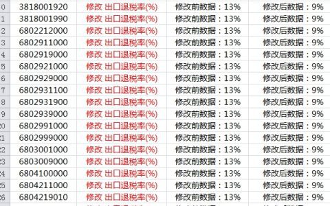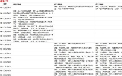 | 海关编码 | 类型 | 修改前数据 | 修改后数据 |