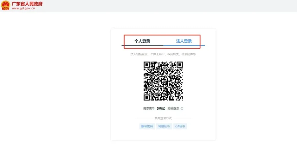 个人登录、法人登录两种方式可择一登录平台,平台也提供了账号密码、网银证书等登录选择。