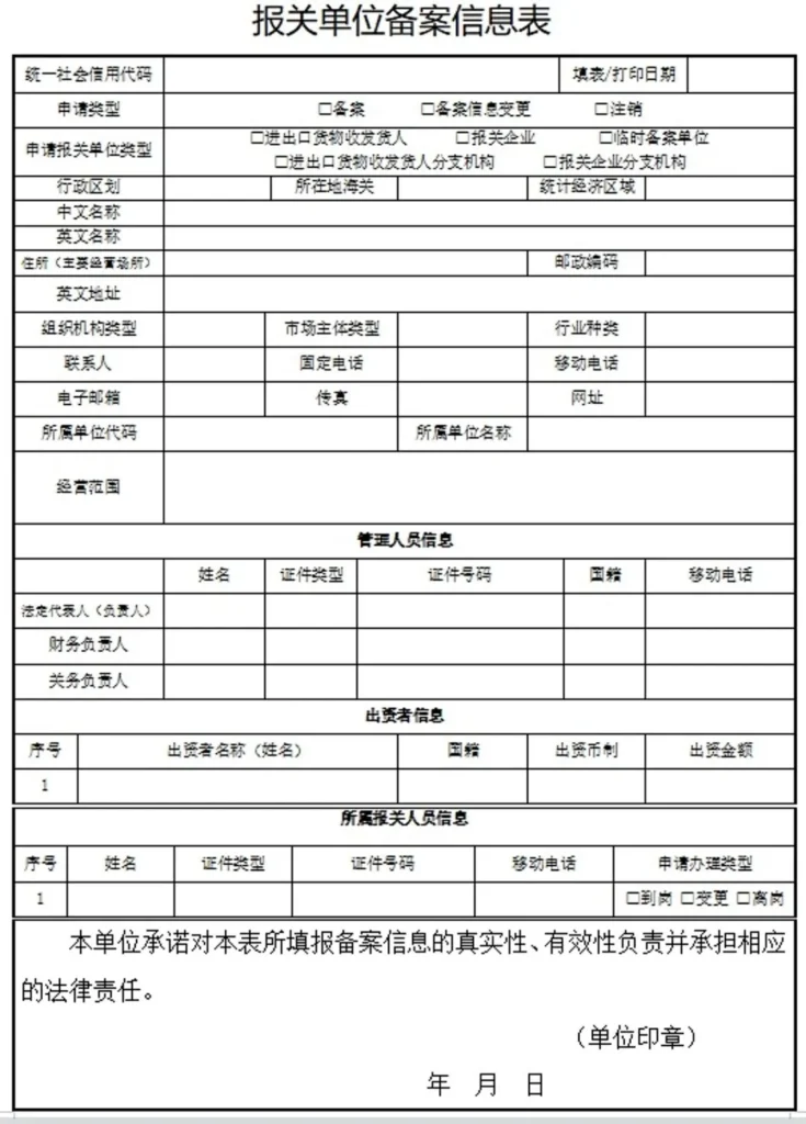 《中华人民共和国海关报关单位备案管理规定》(海关总署令第253号)附件——《报关单位备案信息表》填表说明中,对于各项目填写有具体说明,可参照填写。