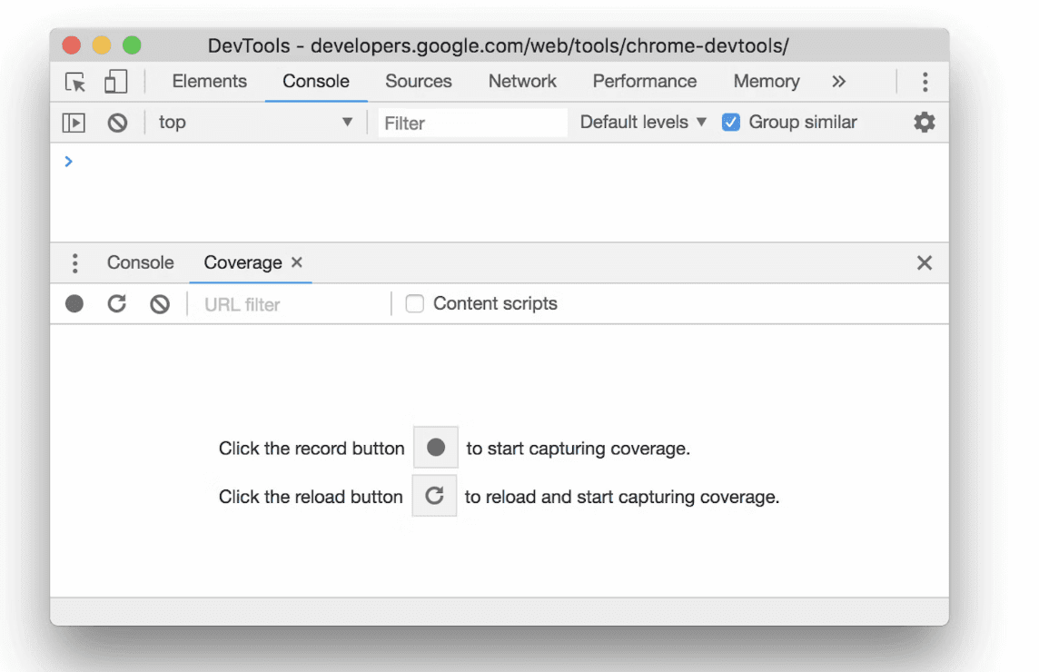 Chrome DevTools 中的coverage选项卡可以为开发者提供未使用代码的逐行细分。 Puppeteer 中的 Coverage 类也可以帮助自动执行检测未使用代码和提取已使用代码的过程,比如下面的代码: