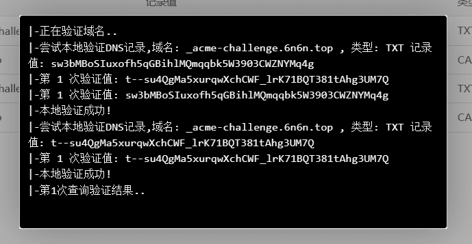如下图所示:注意填是前面的_acme-challenge没有后边的.6n6n.top