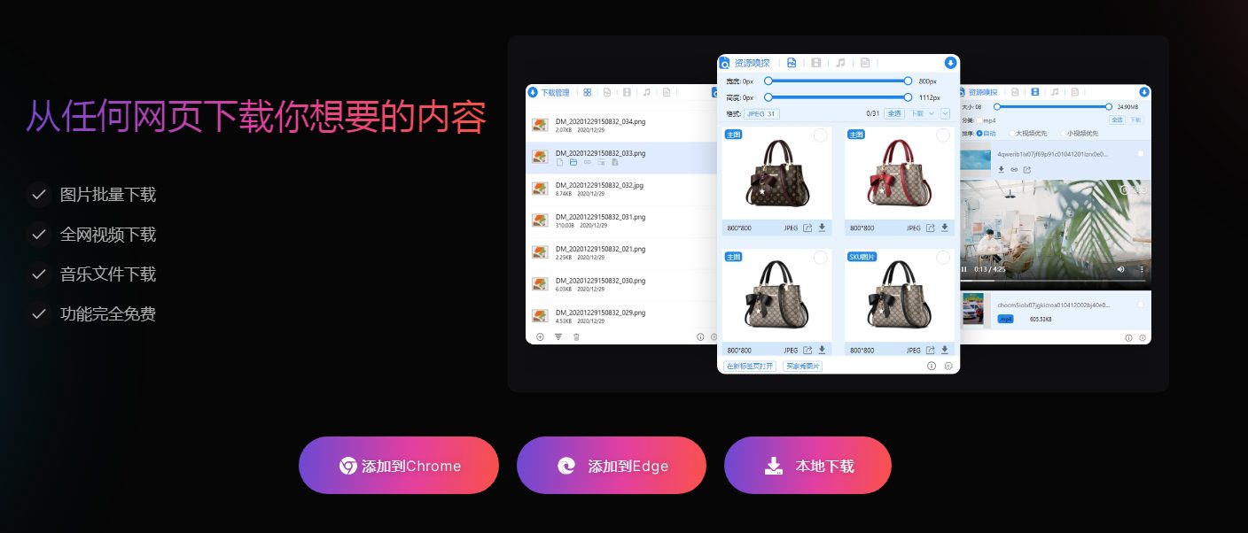 ✓智能获取网页中的大图,告别只能下载小图片的烦恼。