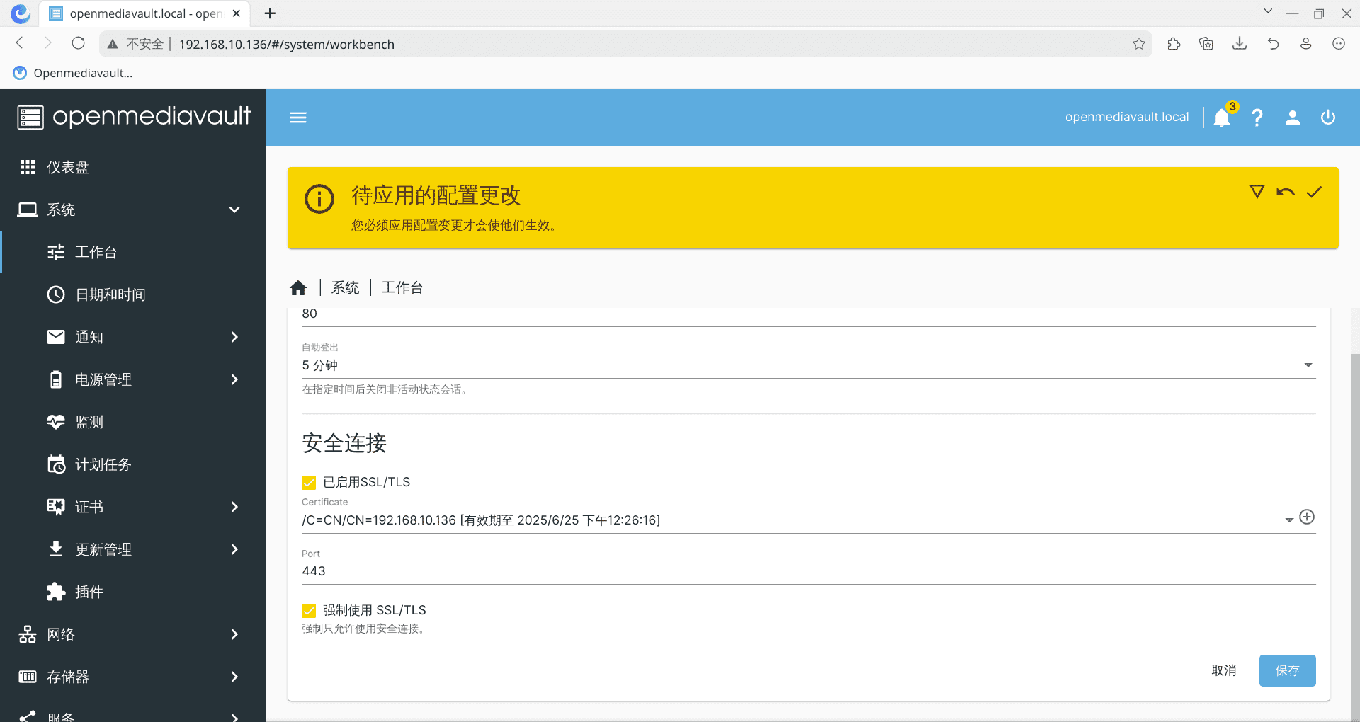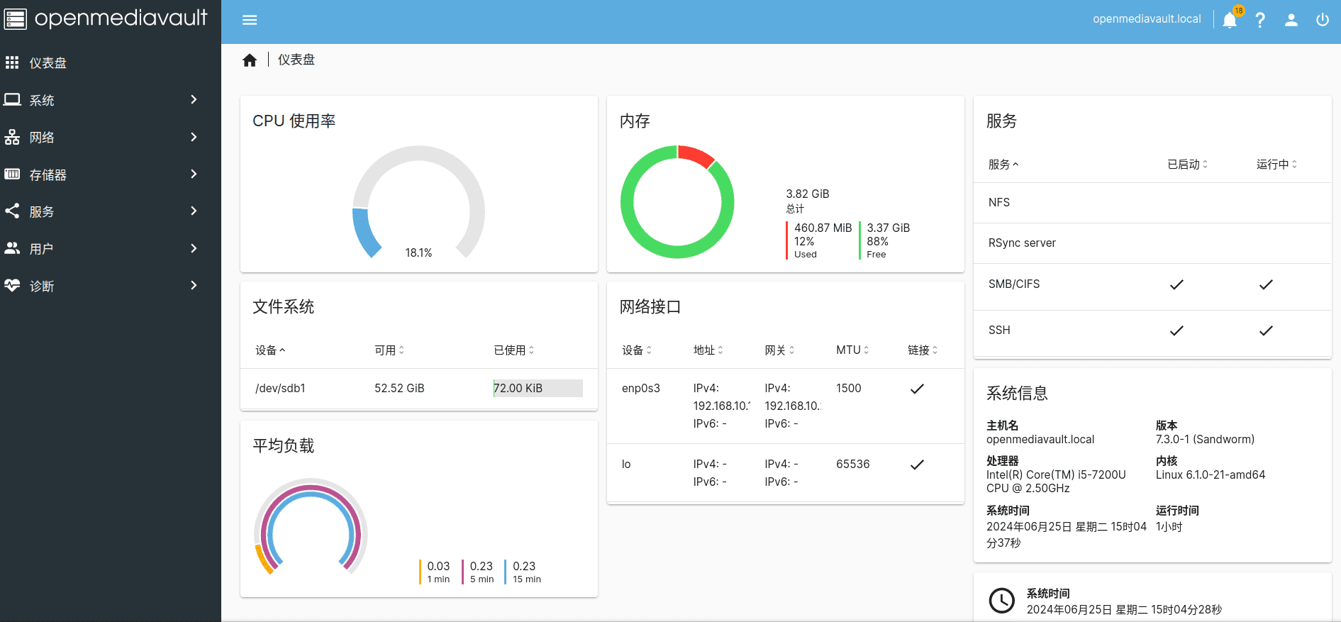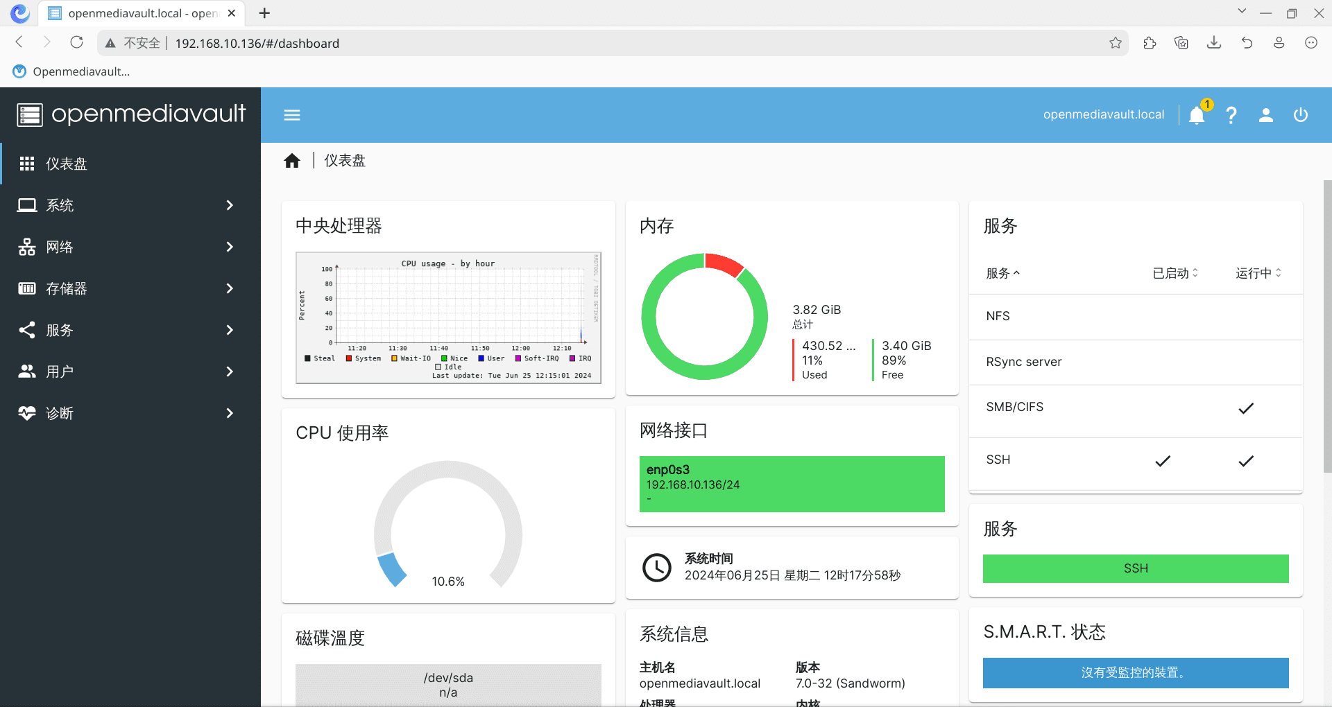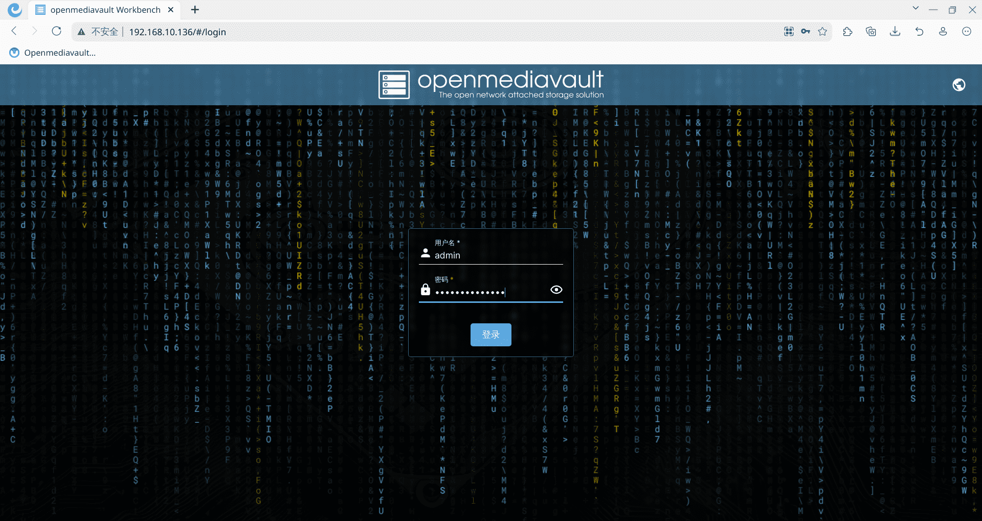 登录界面很fashion,默认是http的,设置里可以改成https 的,默认用户名admin,密码openmediavault。