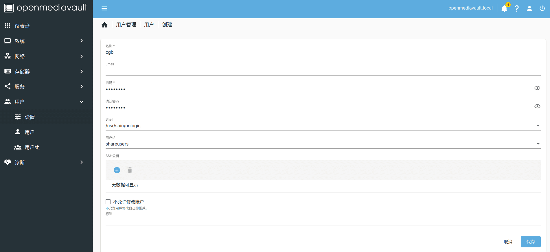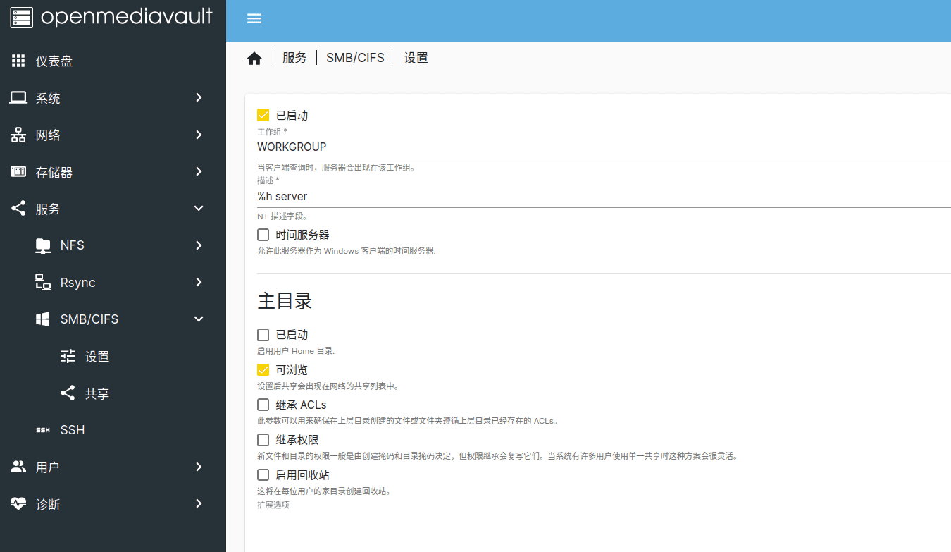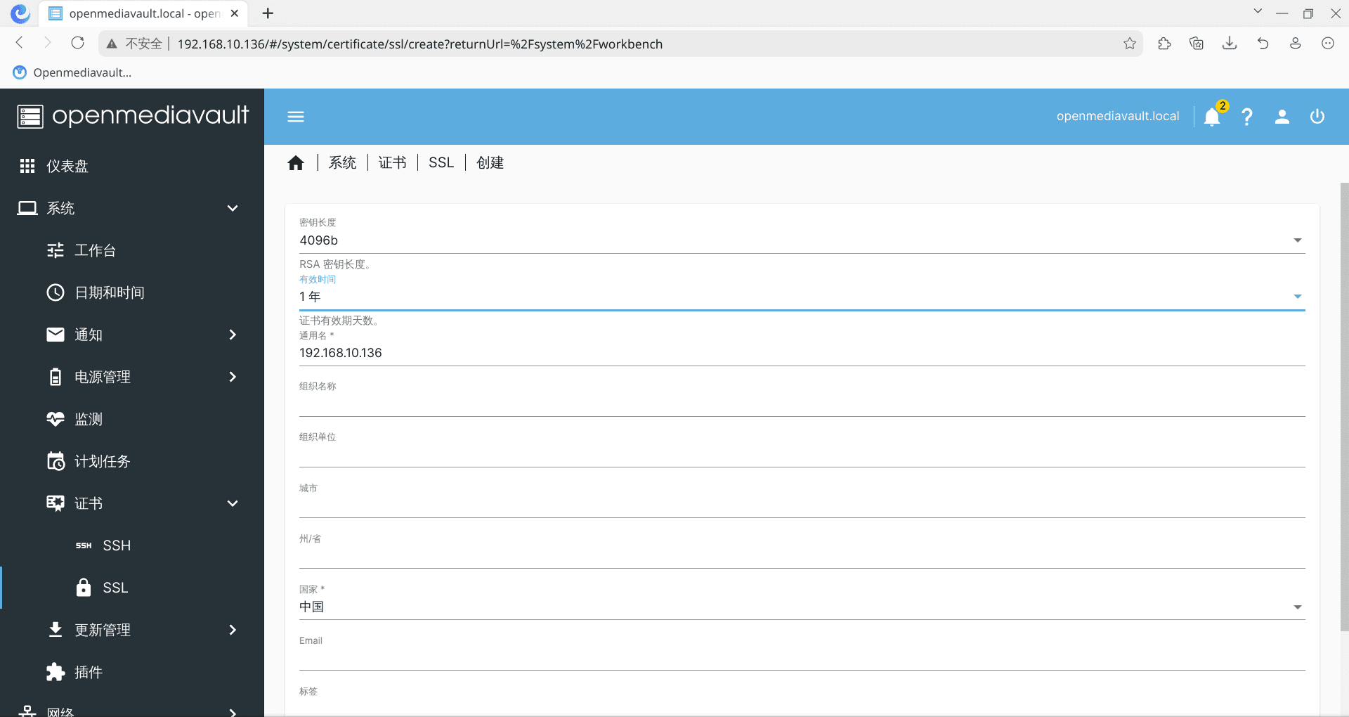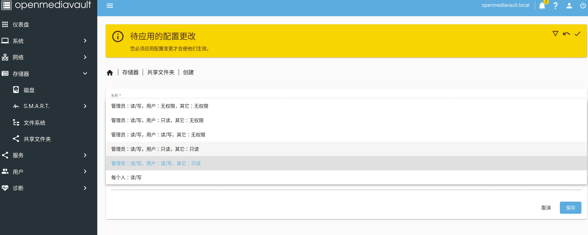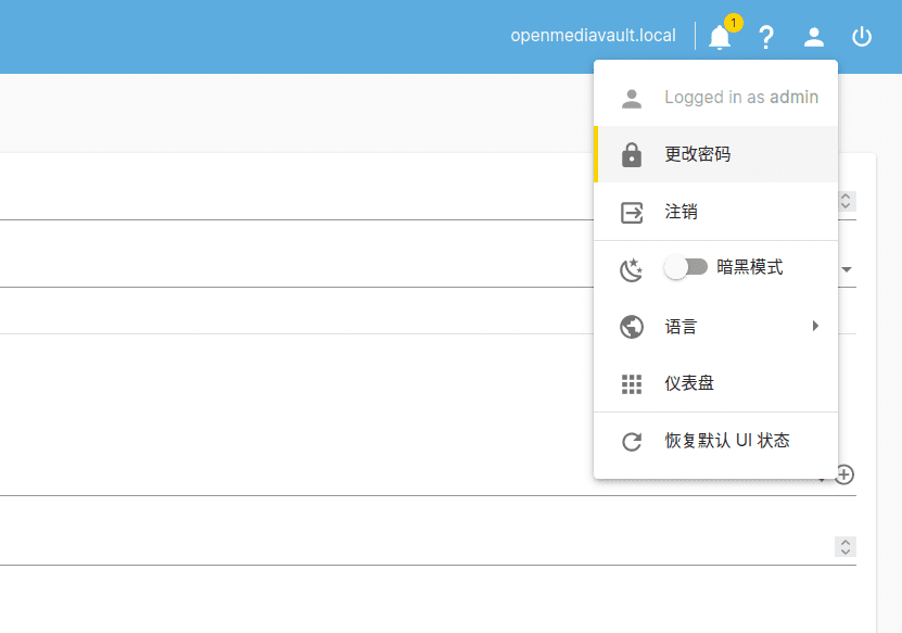 登录界面很fashion,默认是http的,设置里可以改成https 的,默认用户名admin,密码openmediavault。