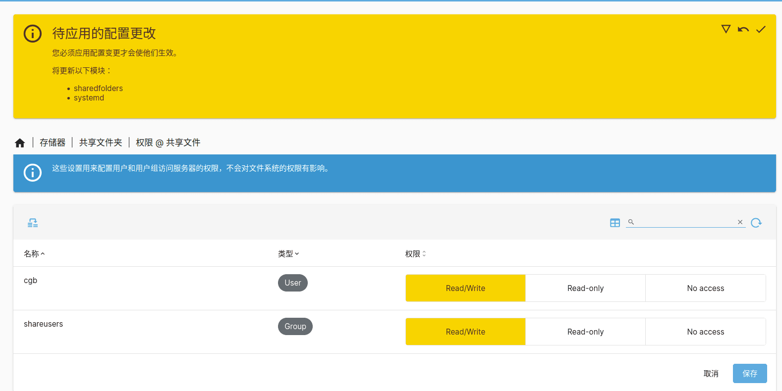用户kfb只可在“共享文件”中创建修改文件、文件夹: