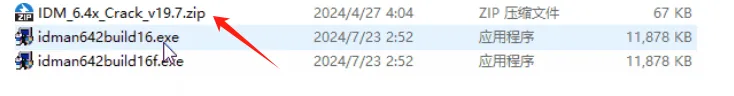 现在需要你退出IDM,打开解压的文件夹,你会看到里面还有一个压缩文件IDM_6.4x_Crack_v19.7.zip,解压它。