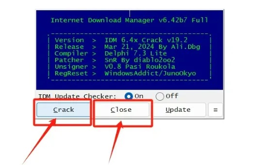 解压之后运行破解程序IDM_6.4x_Crack_v19.7.exe。