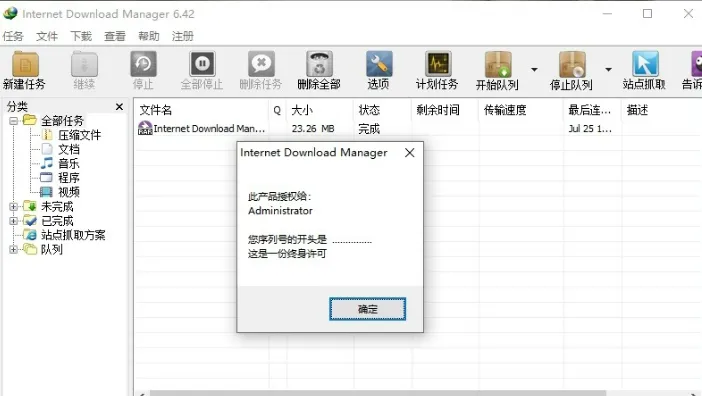 激活完成之后,再次运行IDM主程序就显示已注册了, 最终状态如下: