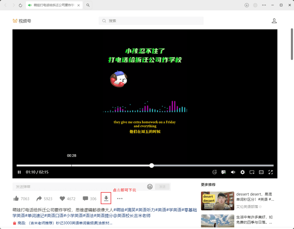 - 在视频下方的操作按钮一栏,会多出一个“下载”按钮。