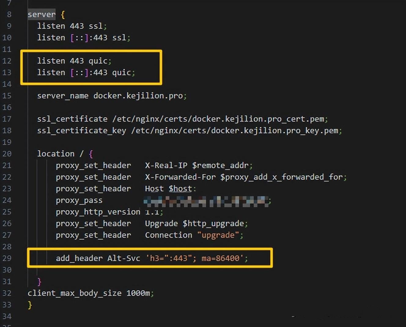 add_header Alt-Svc ‘h3=”:443″; ma=86400’;
