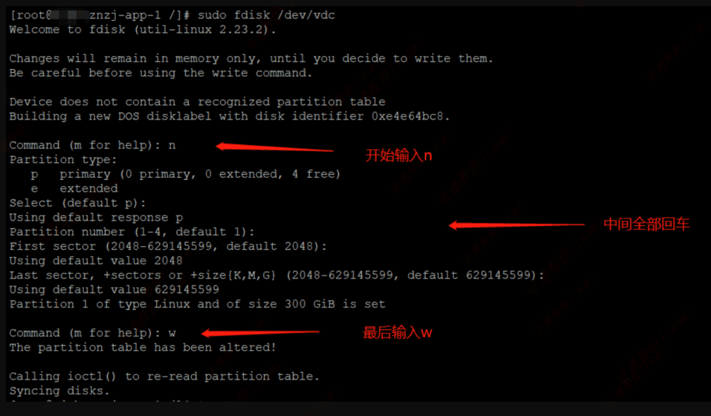 [root@-znzj-app-1 /]# sudo fdisk /dev/vdc