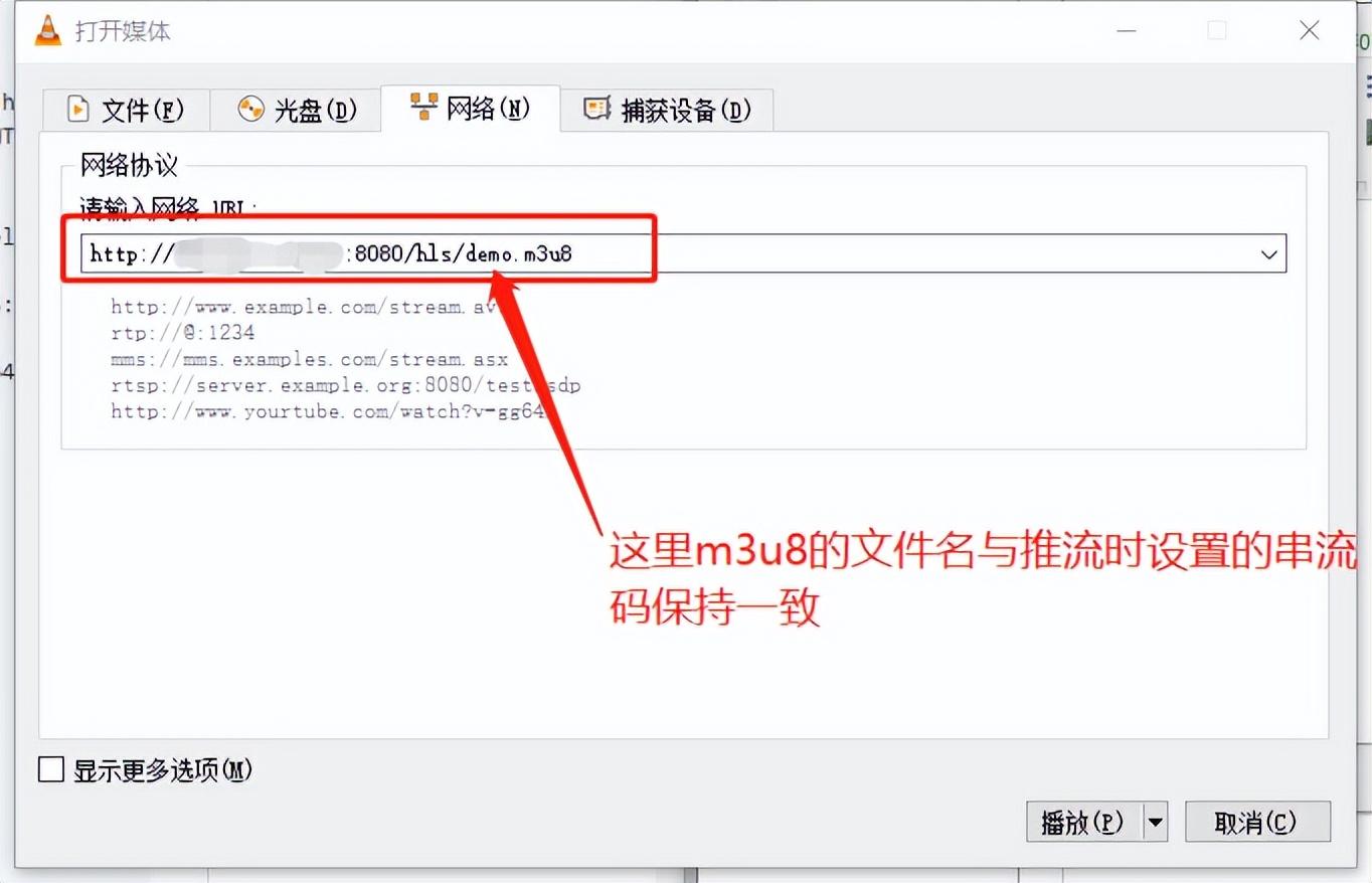 注意m3u8的文件名与推流时填的串流码一致