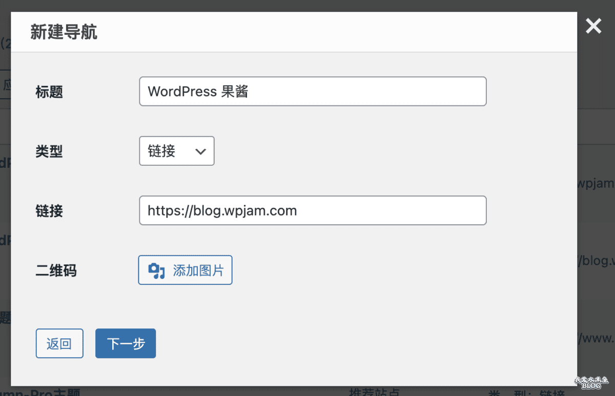 在网址导航后台列表页可以分步骤快速添加一个导航网址,点击新建按钮直接弹窗: